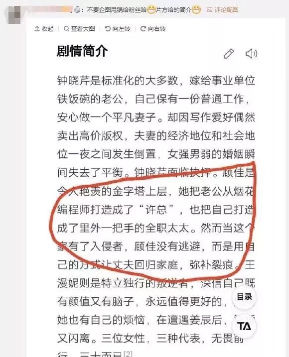 7 z4 i$ q1 n" f8 z/ `# J" B骂她是因为她演的不是女一号。最重要的是,她饰演的角色,是一名在丈夫出轨后,弥补裂痕,让其重归家庭的家庭主妇。