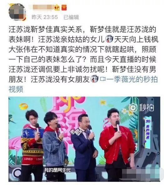 ' ?1 V }4 Y- q4 h2 o. q不过也有网友质疑,此举纯属节目组为了效果凑CP而已,更有爆料称靳梦佳和汪苏泷其实是表兄妹关系,随着亲密视频一出,无疑击破表兄妹一说,坐实两人的恋情。