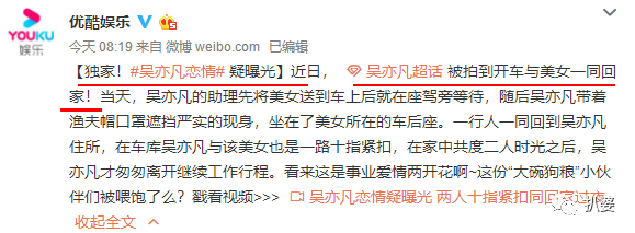 早上起来的时候,发现吴亦凡带来了新一轮的甜蜜暴击,和21岁小姑娘约会被拍恋情曝光了。4 r) p4 D/ \! r8 {/ L/ M7 A" n