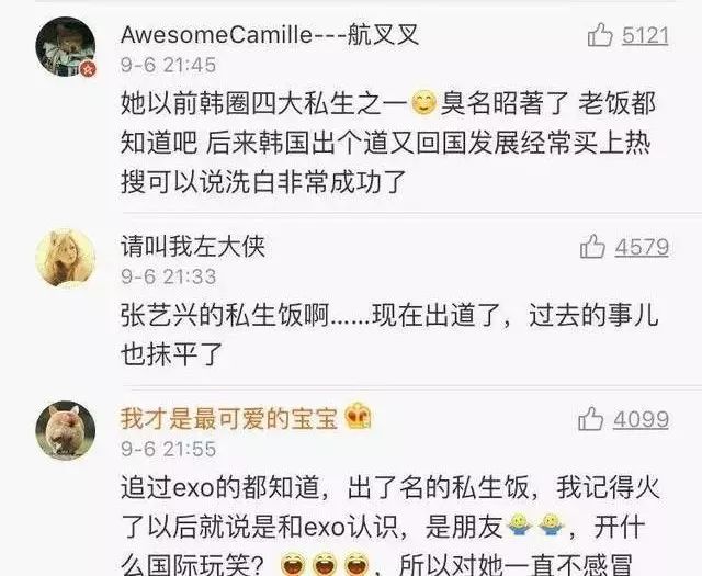 ( d1 k% w. F0 z她在国内出名之后,也被网友迅速扒出,在韩国时曾经是张艺兴的私生饭。