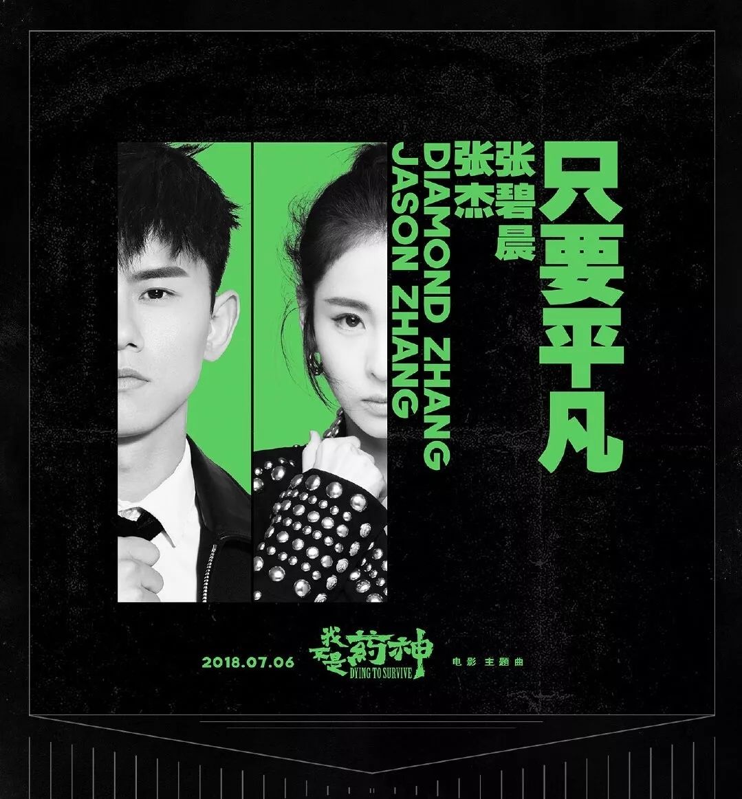 比如大热的电影《我不是药神》,主题曲《只要平凡》就是张杰和张碧晨共同演唱的。