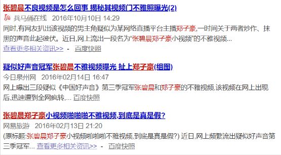 : N6 w5 ~( h- V% n4 e当时名为“张碧晨郑子豪”的不雅视频在网络上疯传,视频中的女主角虽然和张碧晨有些相似,但很明显并不是她本人。4 q- C! Q" f2 m