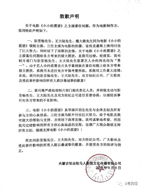 结果昨天的首映礼刚结束,彭昱畅团队就发了解约声明,重点——