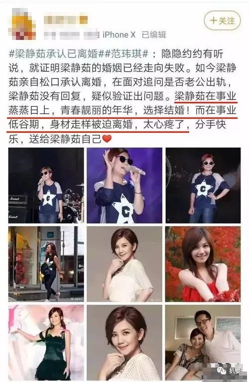 | 本文原创自微信公众号“扒婆” ID:bapo818,未经允许,请勿转载。不过欢迎大家把文章转发到朋友圈哦,么么哒。原本不打算写梁静茹离婚的,原因么,和评论区有些胖友的想法有点类似,上次传离婚时就觉得基本上是真的了,虽然当时双方都否认了,但随后梁静茹的好闺蜜范玮琪就出来石锤他俩真离了。* w# z2 Z7 \# x5 t0 w, j3 z0 s% B8 \: [/ z5 l; [* m- g