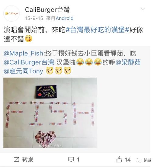 梁静茹粉丝发过打卡微博还被该店官博转发过。; J1 N: |' K/ E8 g* y- I# w: _