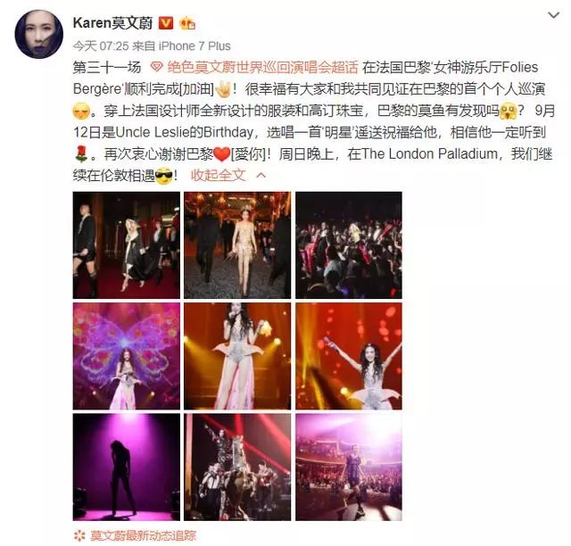 | 首位华人女歌手!莫文蔚登巴黎殿堂级剧院开唱,不忘悼念张国荣! |