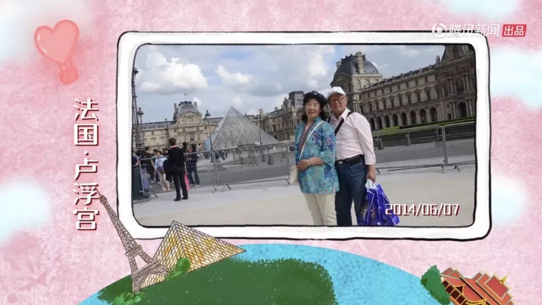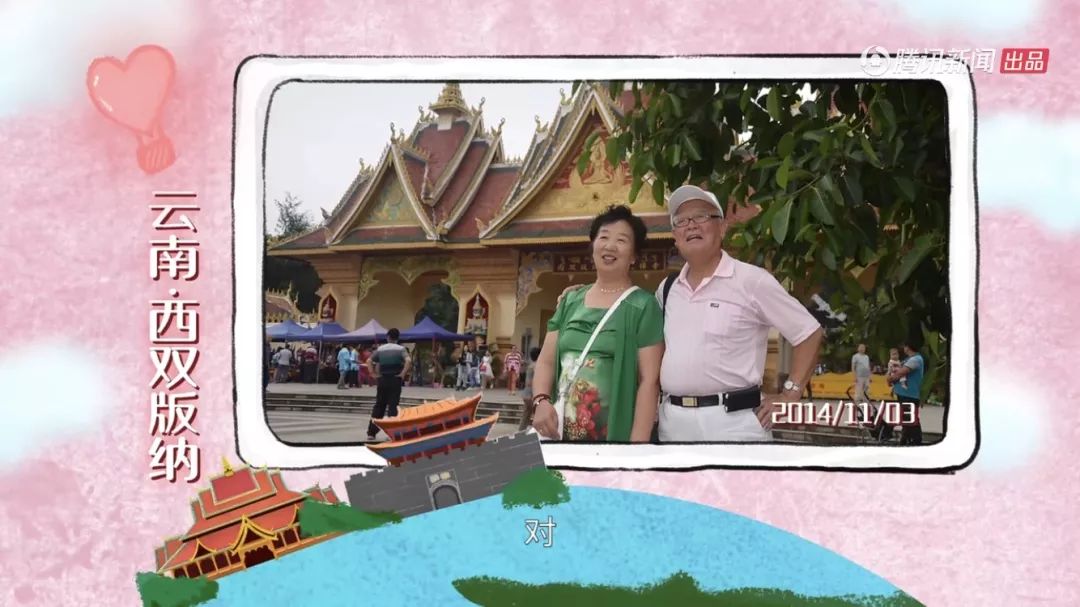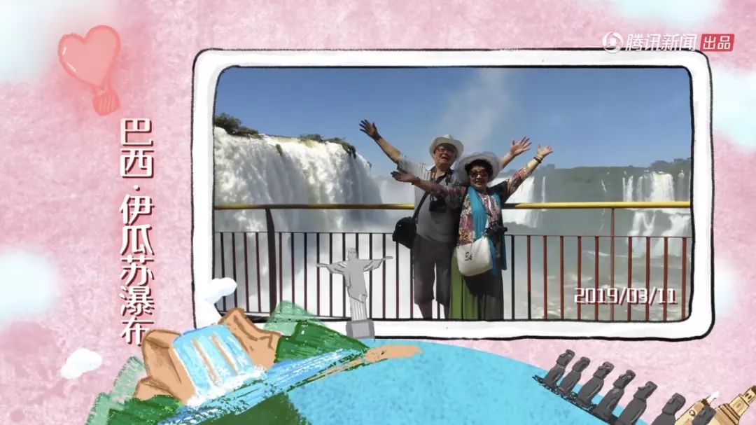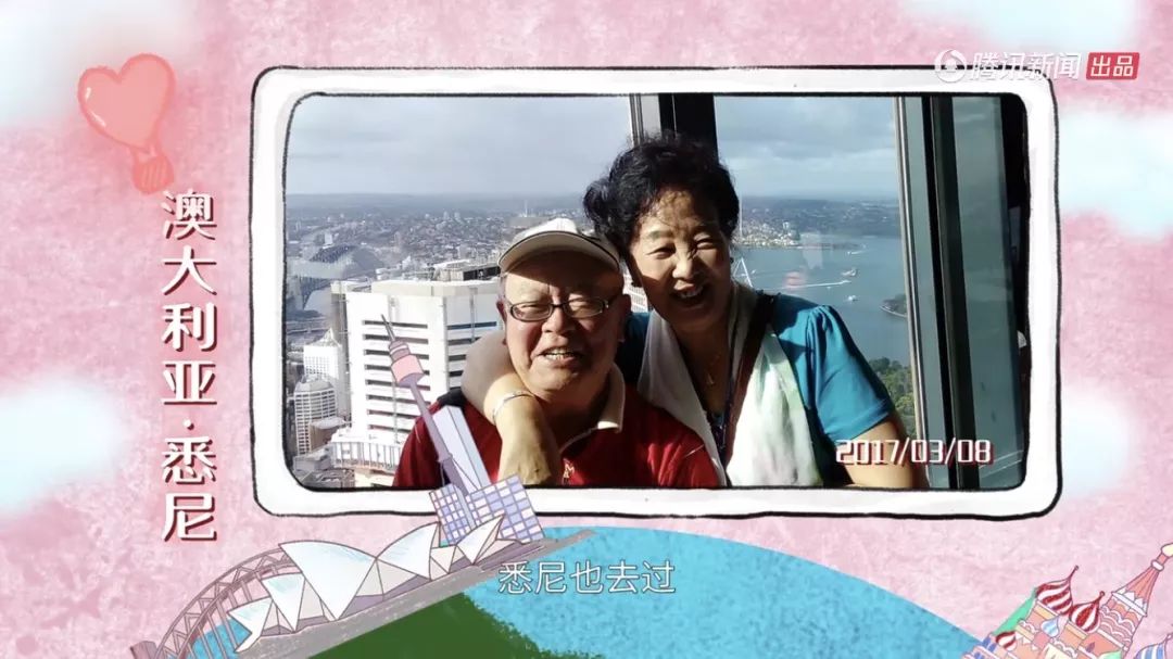 , A# s; l v1 |) O& {( T, ~老两口家中还有一个大灯箱,每次回来就会换上最新的旅游照,这是他们俩共同生活的仪式感。