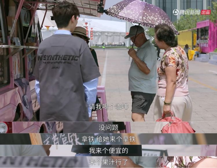6 Z. x. X& W* s! U两位老人相互搀扶着来到餐车前,张奶奶带着可爱的青岛口音对张爷爷说,“请我喝个咖啡?”