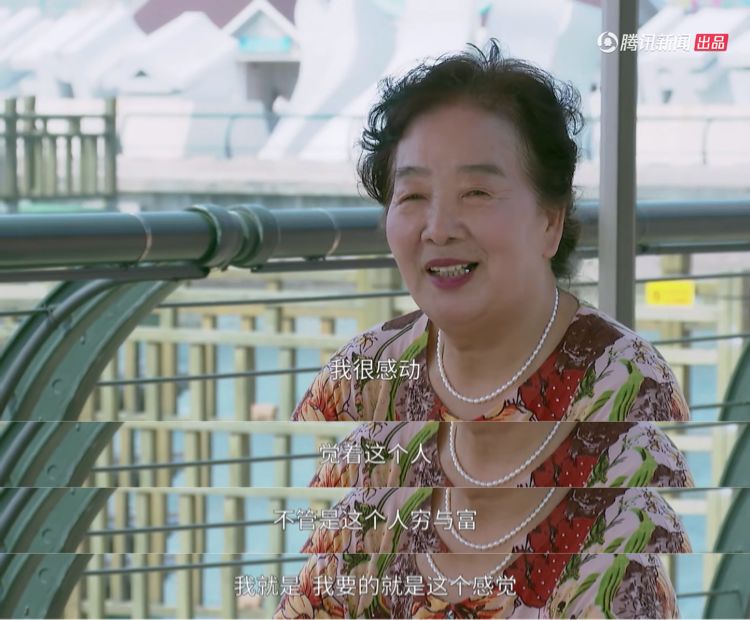8 G3 N+ e& Z0 C# ~, ]0 i张奶奶说:“我很感动,觉得不管这个人是穷是富,我要的就是这个感觉”。" P7 X3 P9 _" g+ I