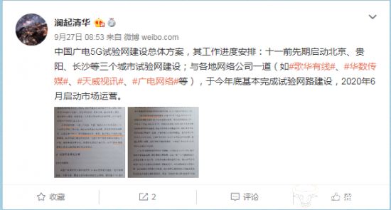 内部材料曝中国广电5G试验网规划:投24.9亿元年底前在16个城市试点 |