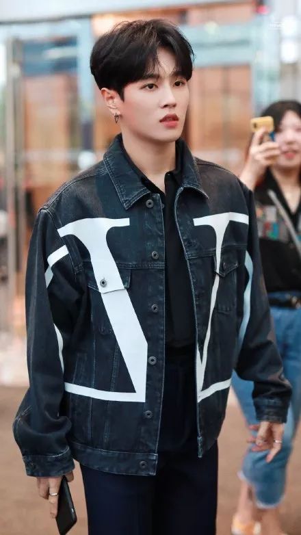 4 L! Z6 @/ S9 r9 T黑色衬衫+黑色牛仔外套8 K: h" G) d( l