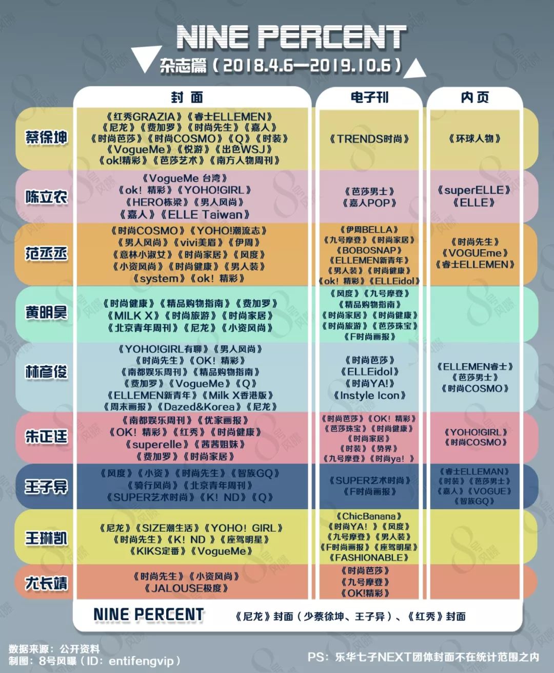 范丞丞是首位登上《system》封面的亚洲男艺人,林彦俊则是中国首位登上《Vmagazine》杂志的艺人。 相比之下,组合迄今为止一共拥有两张封面——《红秀》与《尼龙》,后者还缺了蔡徐坤和王子异。/ [$ J# }1 l& T% b' z t