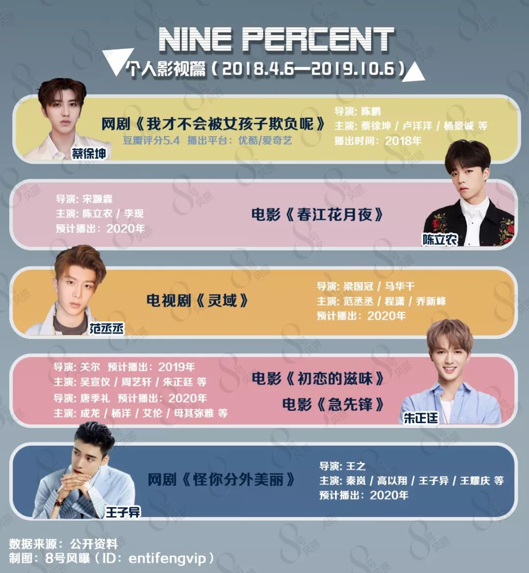 今年7月,有人在林月的微博下问道,“NINE PERCENT是谁?”,看到这个问题后,她伤心了好几天,也在思考该怎么介绍偶像们,结果想了半天只剩下一句,“就是那个蔡徐坤在的男团,里面还有范冰冰的弟弟范丞丞。”然而同一个月,有私生饭冲到了范丞丞所在的餐厅外,大骂他:“糊成这样你不知道吗?” NINE PERCENT看似也走到了这样一步——需要去给大家解释这几个字母是什么意思,里面又分别都有谁。“现在如果再问我对他们有什么期待,那我是不敢想了。”小君对着8号风曝(ID:entifengvip),说出了这句话。9 O) |6 G3 N' i8 R0 n4 L, t