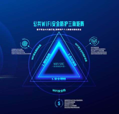 在公共WiFi安全方面,由WiFi万能钥匙独创的公共WiFi安全防护三角矩阵,为用户提供连接前、连接中、连接后的技术保护。