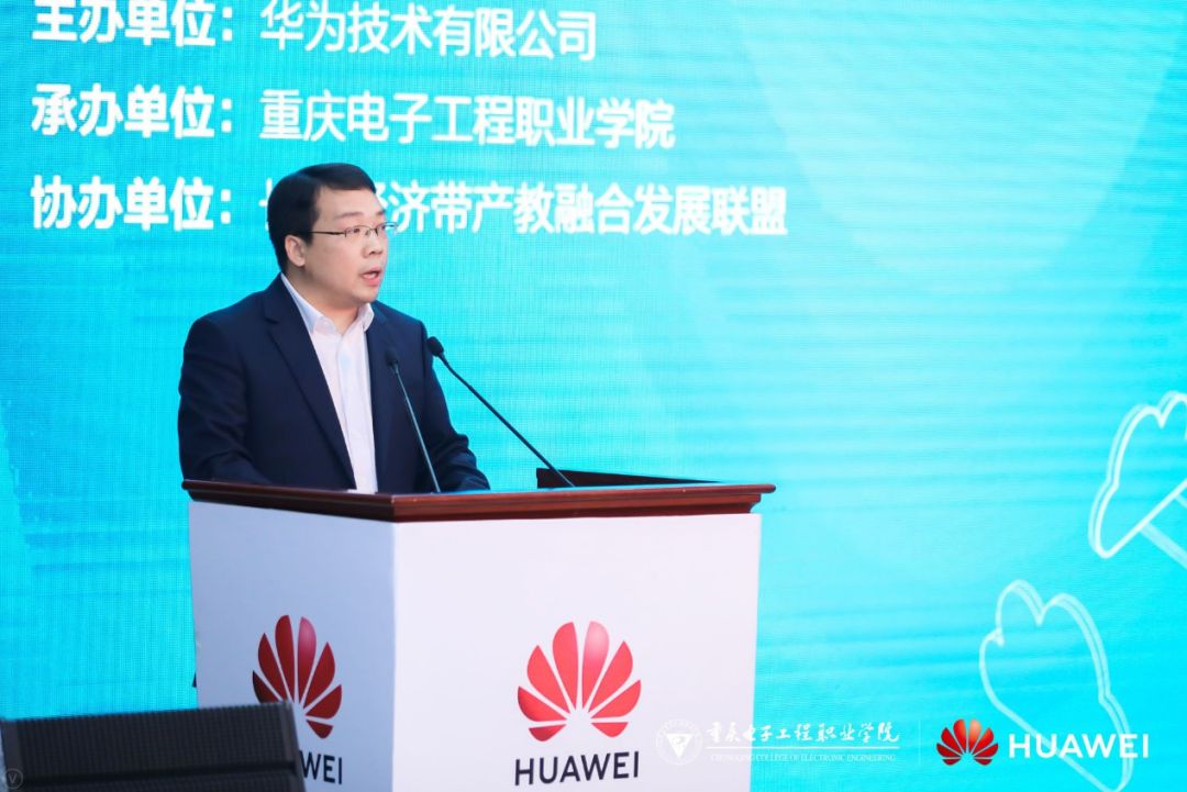 重庆电子工程职业学院书记孙卫平首先代表学校,向各位领导、专家的到来表示热烈欢迎。他指出,重庆电子工程职业学院依托“新一代电子信息和智能化”专业特色优势,与重庆发挥“三个作用”国家战略和重庆智能产业实现产教对接、科教并进。为深化产教融合校企合作,助力高端产业和产业高端,学校与华为合作建立了“重电-华为ICT学院”,依托华为ICT学院,学校将基于ICT通信学院专业群扩展到“人工智能与大数据学院”、“电子与物联网学院”、“ICT通信学院”三大合作专业群,校企合作培养在校生人数拓展到11000余名,重庆电子工程职业学院已连续四年荣获“优秀华为信息与网络技术学院”。 重庆电子工程职业学院书记孙卫平