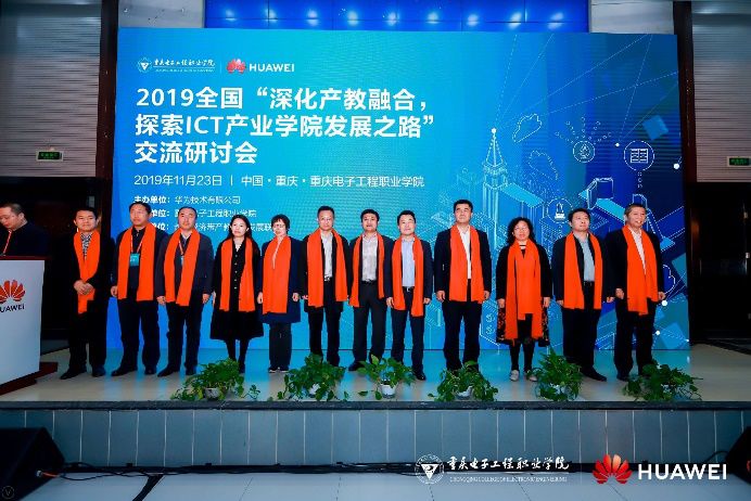 11月23日,在重庆举办的2019全国“深化产教融合,探索ICT产业学院发展之路”交流研讨会上,华为全国首个高职产教联盟——“华为ICT产教融合联盟”正式成立,该联盟由重庆电子工程职业学院、华为、深圳职业技术学院、泰克教育联合发起,旨在通过ICT和教育产业的深入融合,推动产教融合扎实落地。会上,来自全国各地高职院校的300多名嘉宾齐聚一堂,就ICT人才培养和校园信息化建设等问题展开深入研讨,共探ICT产业学院发展之路。$ t& Q# o, B: ~$ c