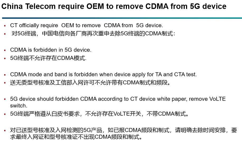 2 ^5 k9 f, e, r, y* ~从 2020 年开始,5G 终端必须去除 CDMA,同时不能有 VoLTE 开关(即默认开启),即便已报 CDMA 也得明确去除的时间。, s$ Q( V% c/ _( x