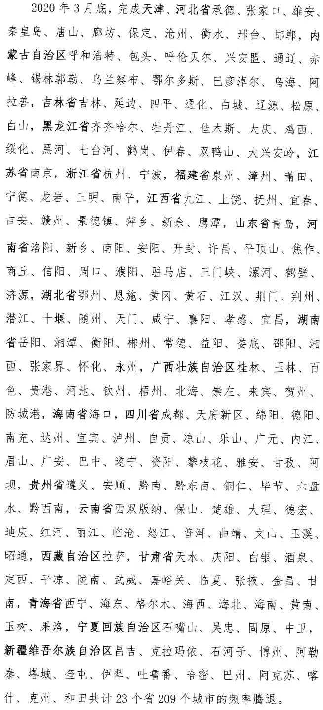 第二批,2020年3月底之前,移动完成209个城市频率腾退给联通,具体如下:) o! R W, M6 U