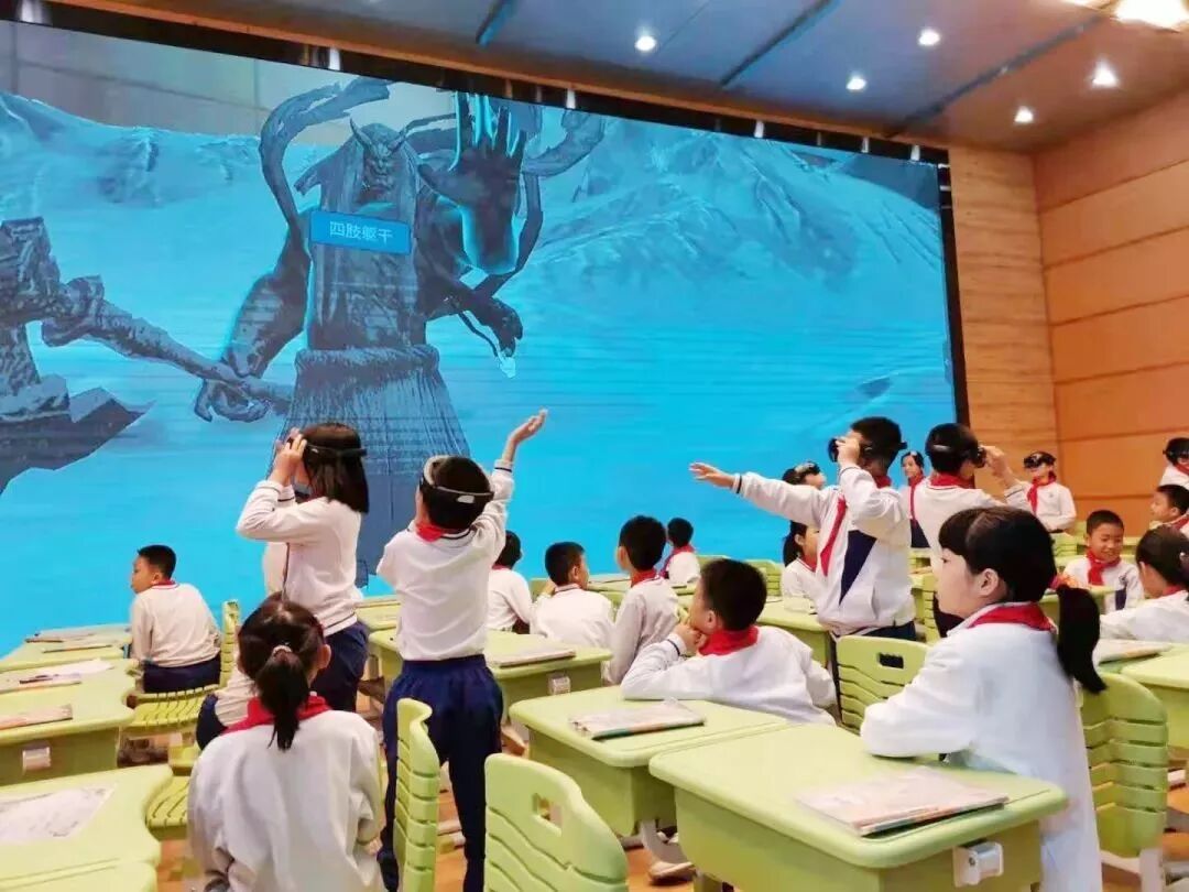 同样的实时授课场景也发生在广州的沙面小学和毕节市第六小学之间。沙面小学与毕节市第六小学的同学们,共同上了一堂“5G+混合现实MR”的语文课,利用MR眼镜体验了沉浸式教学。5G网络远程教学让发达地区与欠发达地区实现教育资源对接,缩小互联网的“数字化鸿沟”。8 K0 k' G0 C1 W5 ?! K5 b