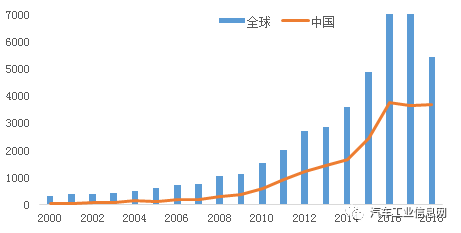 图2 全球及中国车联网专利申请态势 0 F H. o( `( A! }+ t