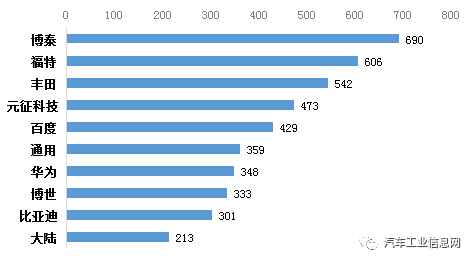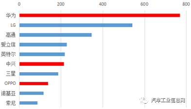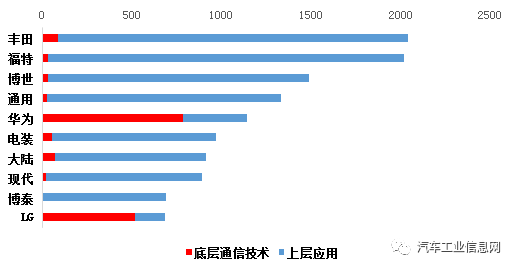 3 f% @: v1 y& H8 B# u图4中国车联网专利申请人TOP10