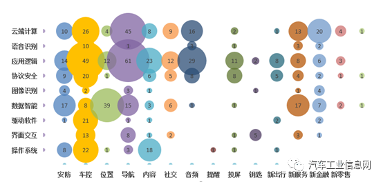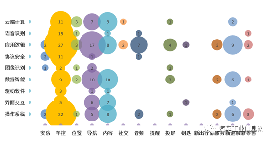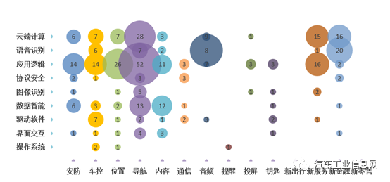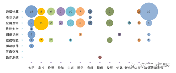 注:平台技术包括云平台及车载终端技术;信息安全主要包括车载终端信息安全、手持终端信息安全、通信安全、车联网服务平台安全等方面;数据技术:从两个维度进行分解,包括传统的数据处理以及车联网大数据技术。