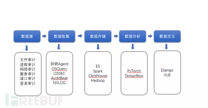 ) I1 F' A7 @% S" v+ W, X7 d$ z 数据分析:随着积累沉淀的数据变多,存储多不意味着系统产出的收益多。基于规则模式的古典分析模式,在超大规模的数据存储过程中,存在视角上的盲点,和人力运维的巨大成本。威胁变化多样,我们需要的不只是指那打那规则策略系统,需要系统有举一反三的能力, 有联想威胁能力。基于AI、基于NLP、基于规则、基于语议分析都可以数据收集后,对原始审计数据中的威胁进行发掘。HIDS收集的数据有时可对应的算法,是否可能被有效的挖掘出数据, 不是一概而论,因为太多数据类型的审计日志, 需要挖掘建模方法,有时模型和威胁元数据是同样重要的。' k U$ m# M$ Y z% w/ E" N