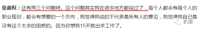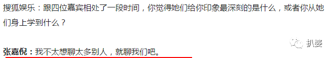 今天这段张嘉倪的专访我看了看内容,觉得记者没啥值得诟病的地方,问的问题都很正常又平和了,倒是张嘉倪一直摆出不耐烦的态度。
