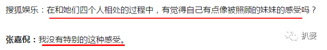 因为张嘉倪参演的真人秀综艺《妻子的浪漫旅行》最近正在播,所以采访里也不可避免的提到了这个综艺以及其他合作伙伴。