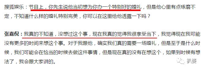 于是记者就问了问张嘉倪和老公买超最爱在媒体面前谈的事,婚礼。