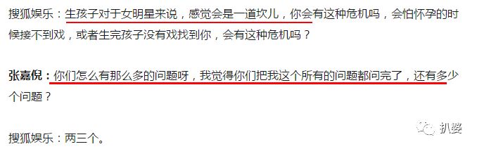 ; w$ a J* G( J& r% i# r更有意思的是,采访里被张嘉倪怼的不太开心的记者,很刚的把张嘉倪曾经接受采访时说自己要生4个娃的说法也截图出来了。9 {2 s! A# w D% F* t. @
