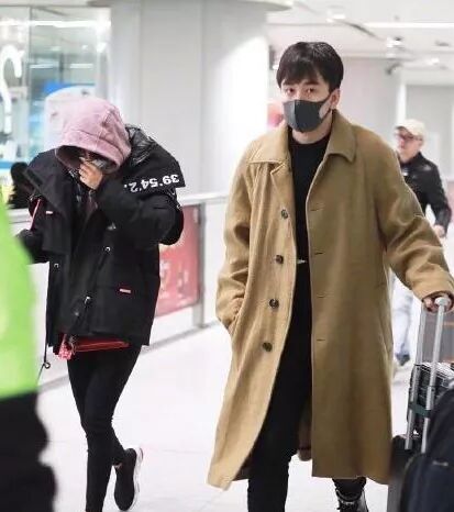 , R- i. | Y' A6 O8 z. P ~4 w照片中,辛芷蕾将自己包裹的严严实实,就连一向不爱遮掩的翟天临也出人意料的戴着口罩,两人一前一后,快步向前。