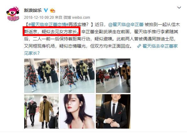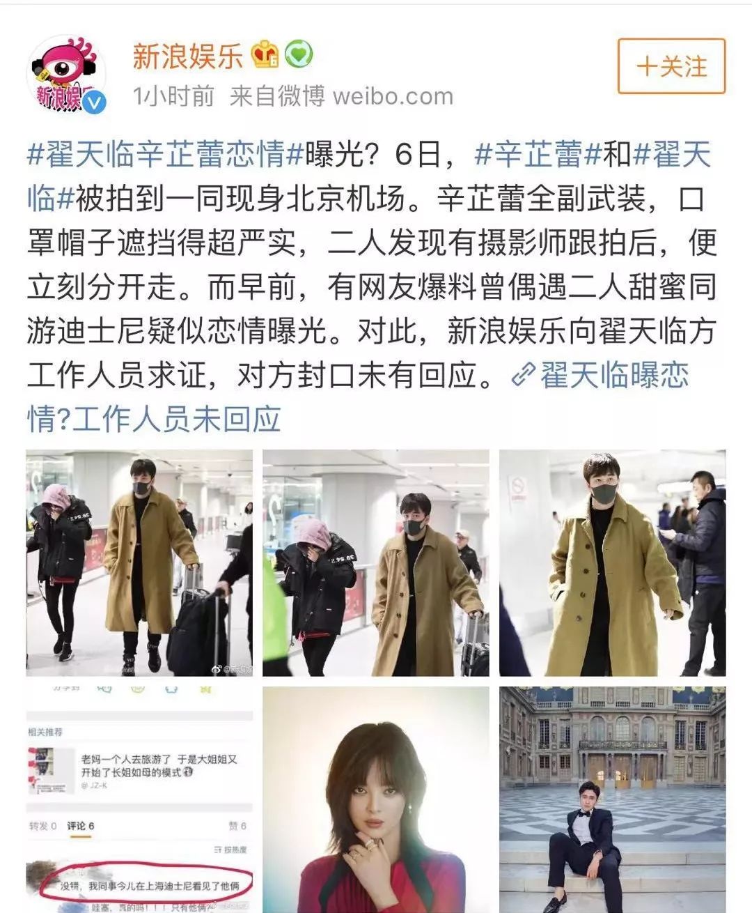 近日,翟天临被记者拍到与辛芷蕾亲密外出并一同返回住处。