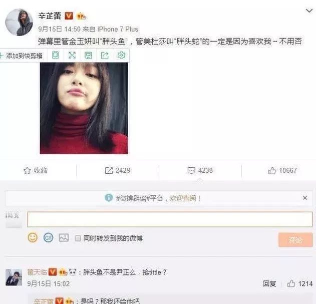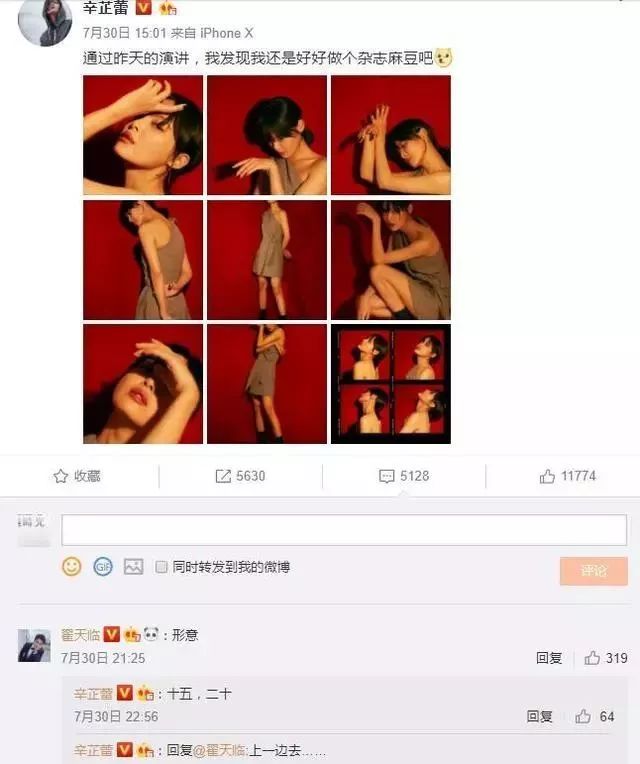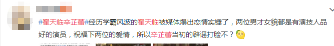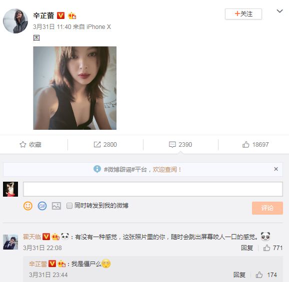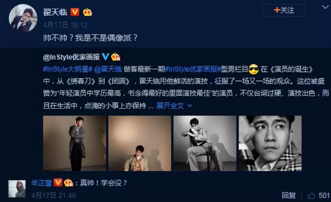 0 o i4 ]/ b$ \1 [去年三月,翟天临首次评论辛芷蕾的微博,在第一时间就得到了正主的回应。( [" r4 [5 |$ P
