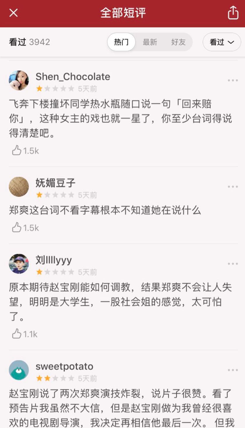 . `1 v' A1 ~0 j; D6 ~! j但这个5.1分,已经是粉丝力挽狂澜后的结果了,最赞全是一星,而粉丝又在拼命打高分。