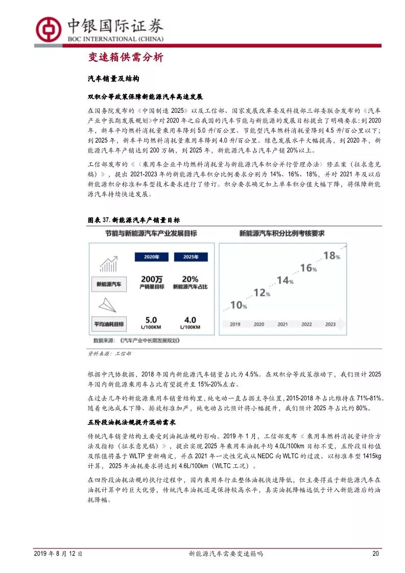 与其相忘江湖,不如点击“蓝字”关注近年来新能源汽车销量高速增长,人们普遍担心自动变速箱的发展前景。我们针对传统、普混及新能源汽车的变速箱进行了详细分析,总体来看,新能源汽车仍然需要变速箱,市场空间依然巨大。我们预计变速箱整体需求仍将快速增长,总体产能供给充裕,利好万里扬等优势供应商,齿轮及油泵等领域逐步突破,未来发展看好。