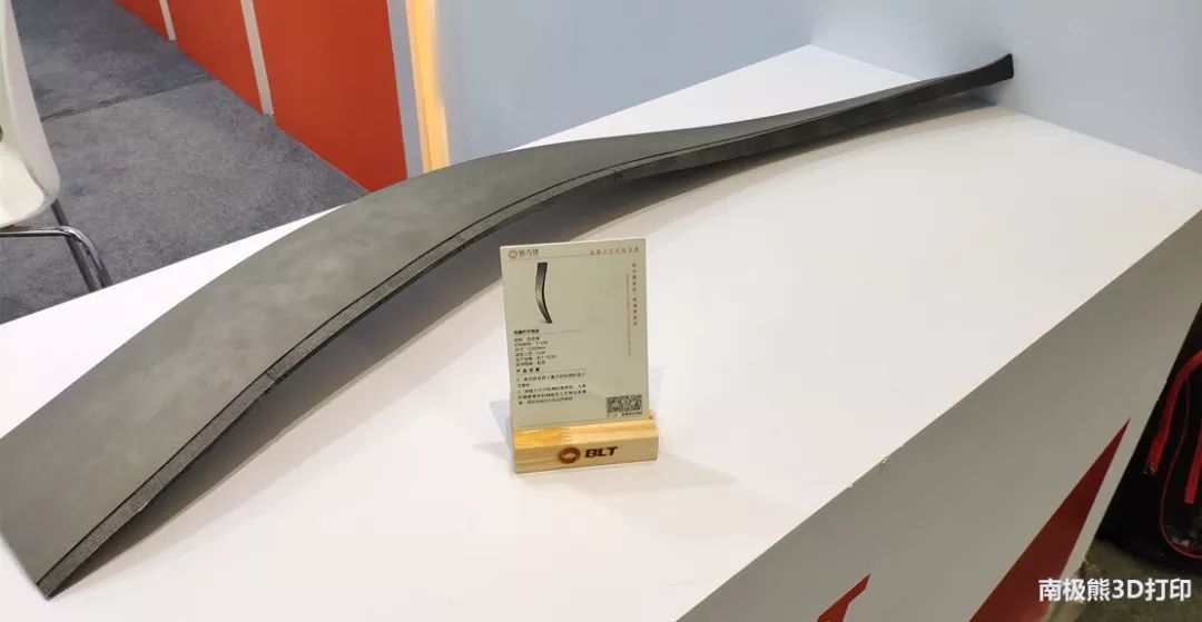 & u/ R7 d( r# u5 K* B△南极熊配图:航空航天应用的3D打印钛合金风扇叶片包边,长度达1200mm,使用铂力特BLT-S500打印制造,打印时长连续5天。