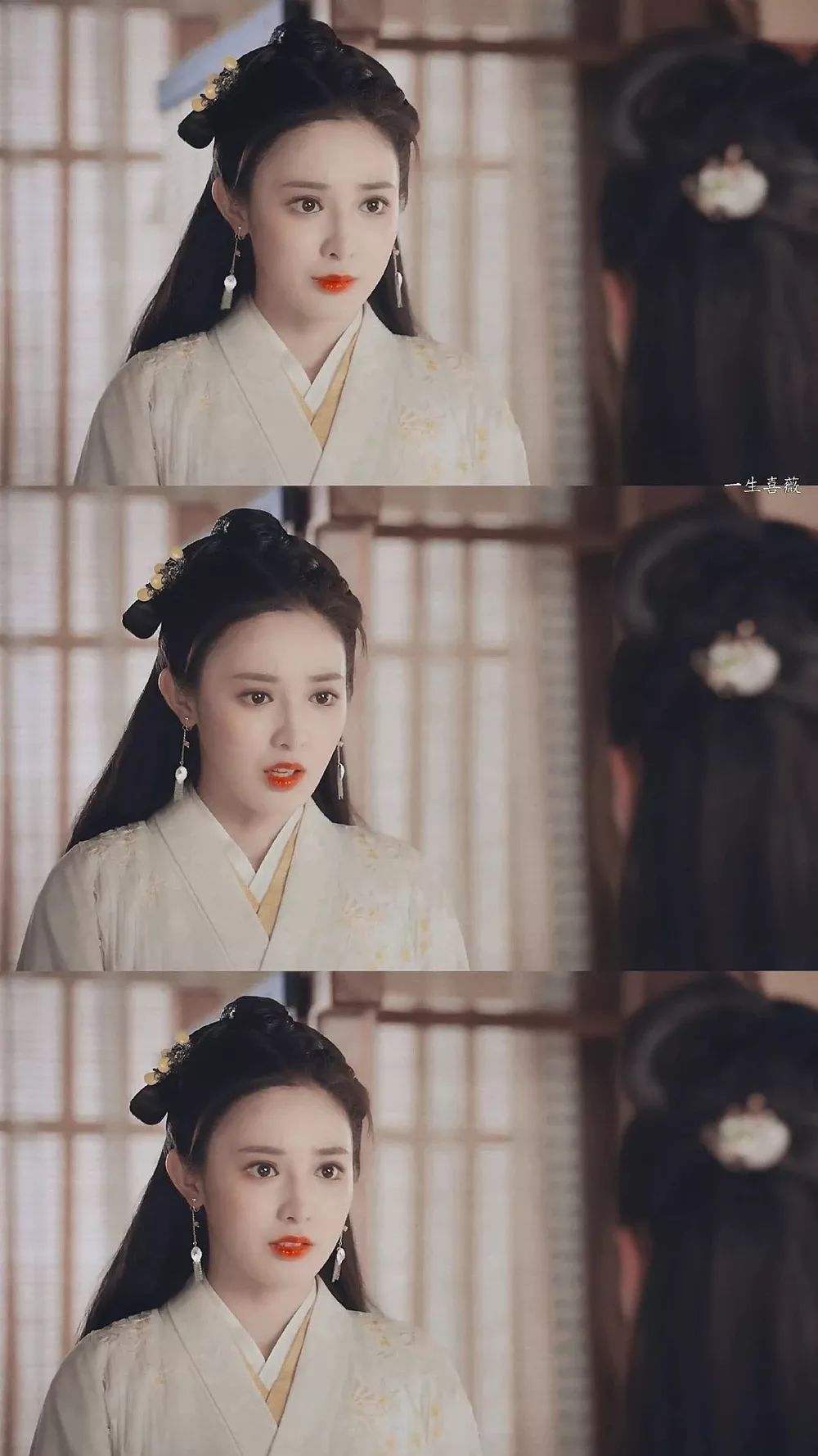 这个角色就是巴家三妹,不过和几位姐姐不同。因为是最小所以性格上俏皮可爱,举手投足间尽显古灵精怪的个性。这一点和《东宫》之中的小枫是比较像,而这部作品造型也是很美不输《东宫》,剧中的她婧姝亭亭而玉立,悠舞步步生莲华。很可惜这部作品何时能播出,一直都是一个未知数。最近网上传出这部作品可以播出了,不过剧情被剪了很多。