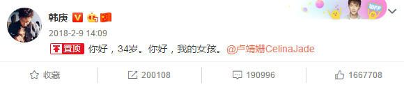 韩庚在生日当天,公开了和卢靖姗的恋情。