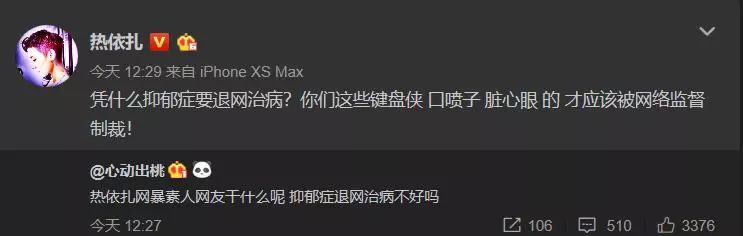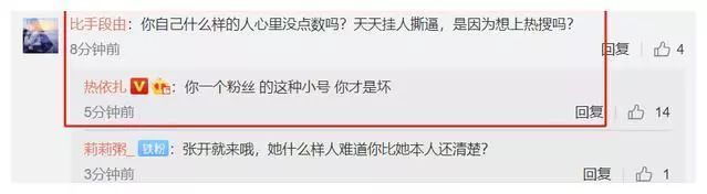 也有网友怼过来了,说她是为了上热搜才天天搞事情:“你自己什么样的人心里没点数吗?天天挂人撕逼,是因为想上热搜吗?”,热依扎也回怼了:“你一个粉丝 的这种小号 你才是坏”。