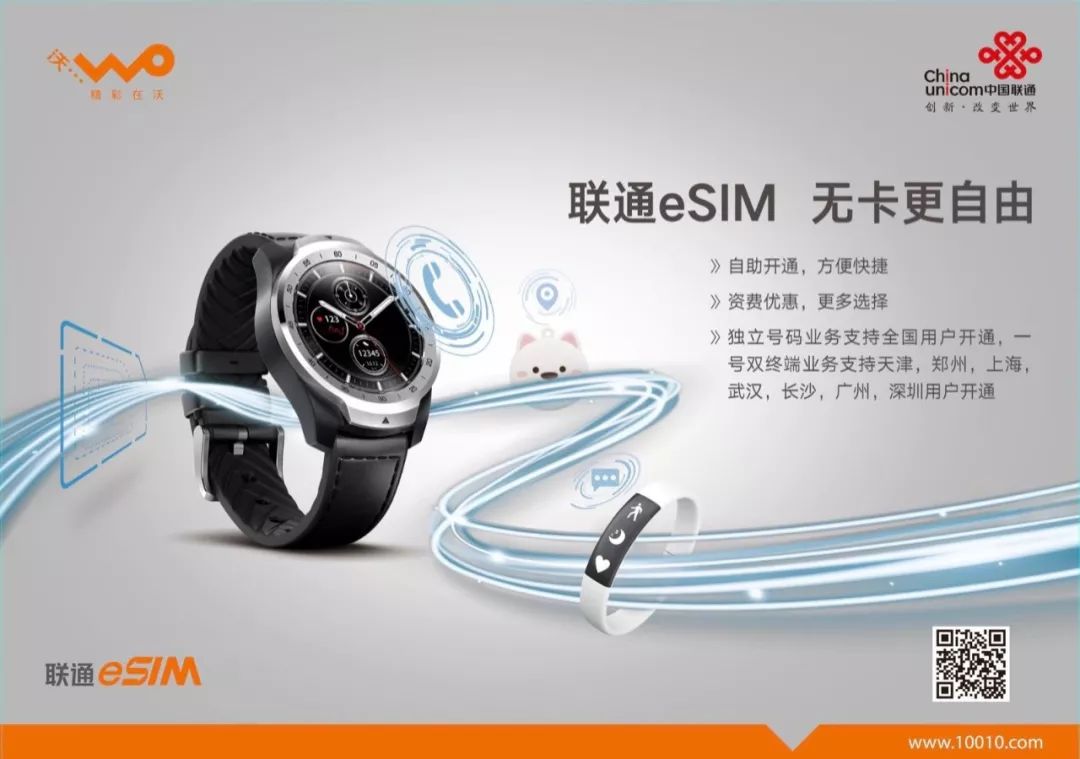 3月8号,工信部正式批复同意中国联通开通eSIM穿戴设备独立号码全国服务试验。中国联通成为目前国内唯一开通全国服务试验的运营商。$ ?# p& ]9 G* ]% G7 l' s