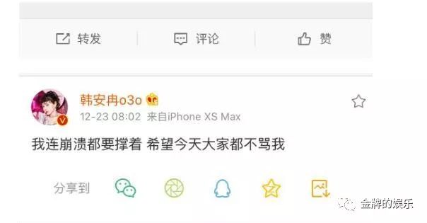 随后,韩安冉又再度发文,我连崩溃都要撑着,但是没想到的是仅仅几分钟之后,她本人就把这两条微博都删除了。