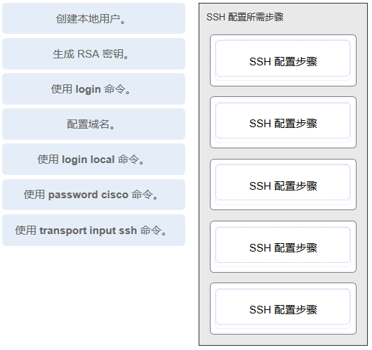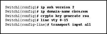8 g: t/ I- M& R8 A: t( W 请参见图示。网络管理员要将 Switch1 配置为允许 SSH 连接并禁止 Telnet 连接。网络管理员应如何更改图中所示配置才能满足此要求?' l# A- x7 B6 r* E