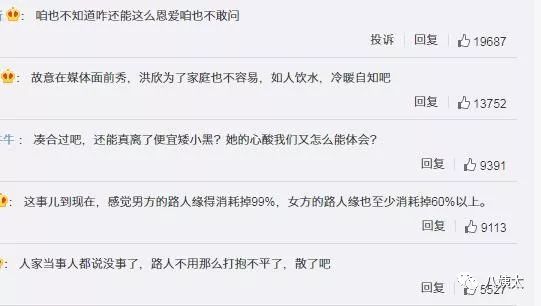 q- L$ ~1 @8 \) K不过虽然网友一直在为洪欣鸣不平,但目前看来,洪欣早已选择了原谅。更有网友直接指出,洪欣就是下一个朱丹。: y$ h( v4 Q; r9 h