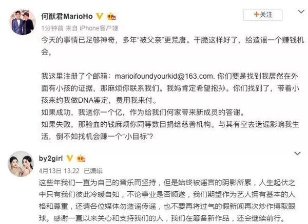 3 ^0 q4 D7 `. W: ~何猷君这边忙着澄清,by2则是发声明表示只想好好工作,传言跟自己无关。