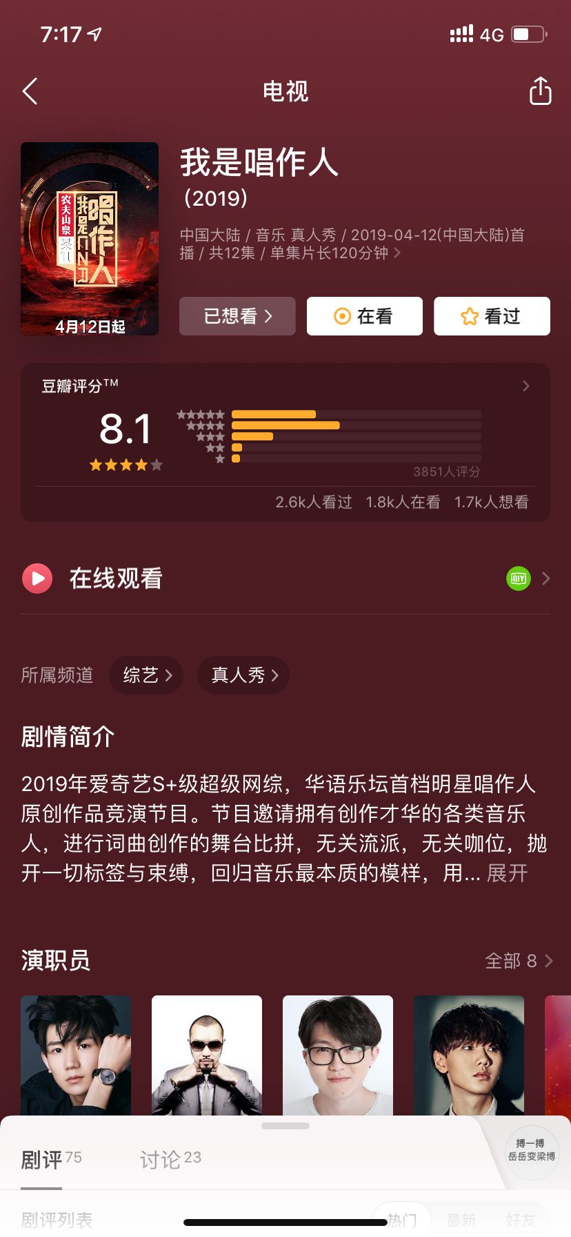 4 b4 N b! L4 T3 N4 e ]5 f/ L但一期过后,在唱作人们毫不留情的正面开怼和突破固有认知的舞台中,它冲进豆瓣一周口碑综艺榜TOP1。! E$ W y5 ]- U8 K4 i+ I9 r