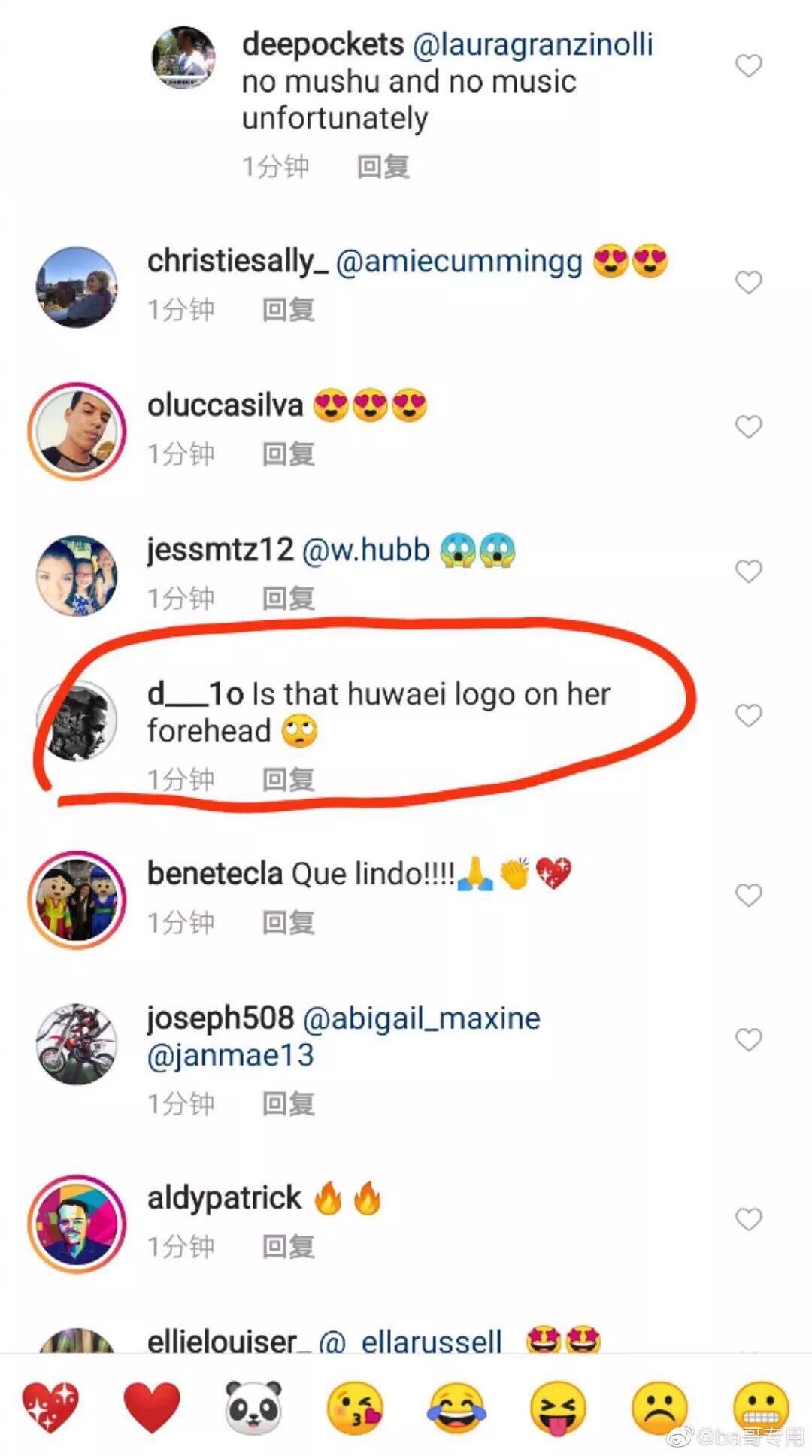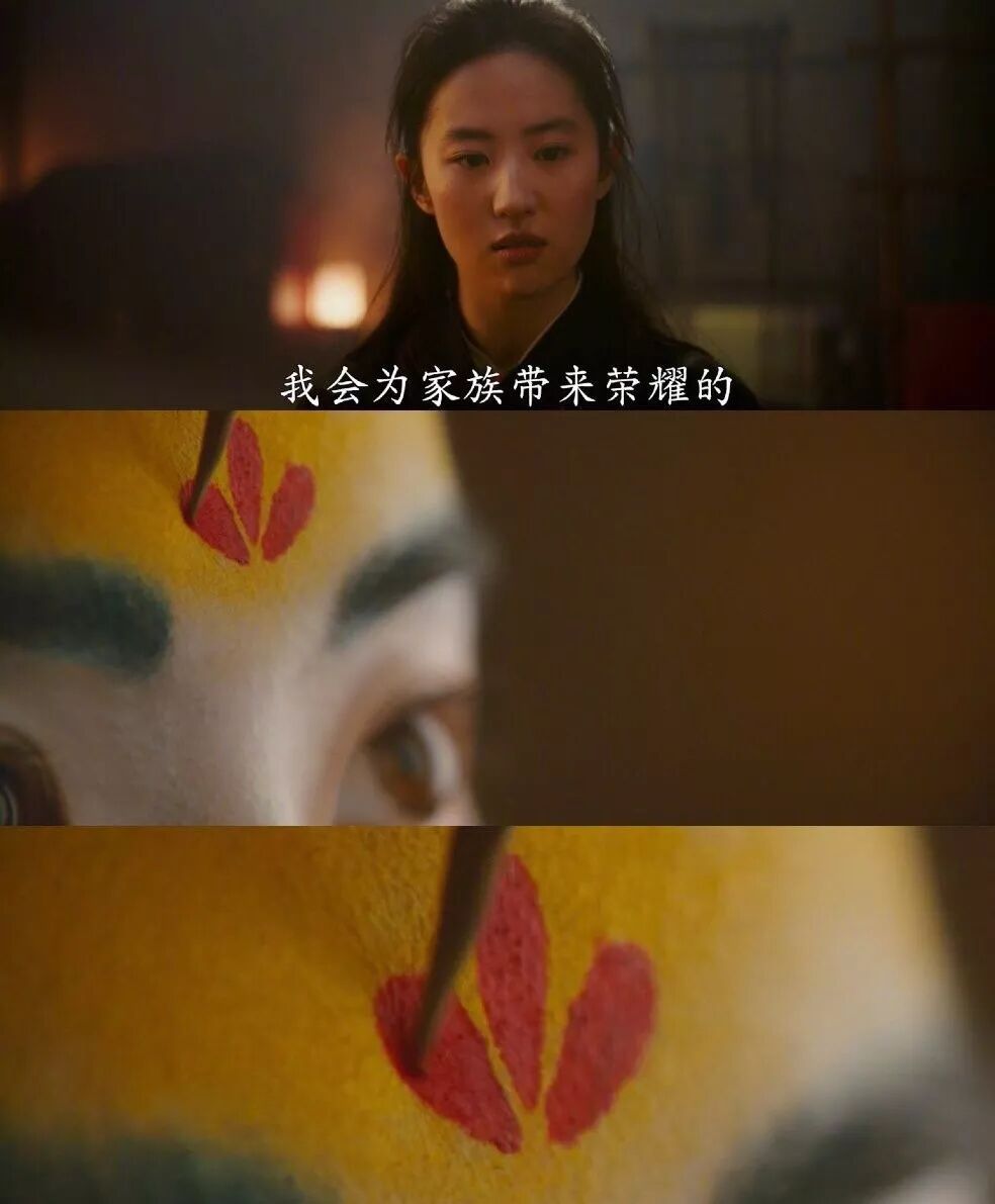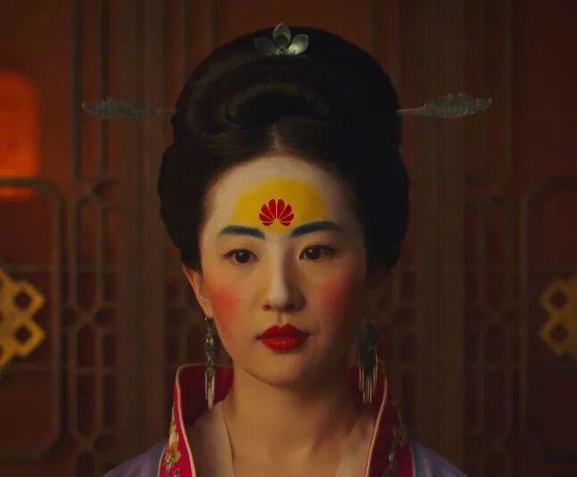 " n# R7 Y' [* `. o( _有欧美网友问花木兰额头上是不是华为的logo?