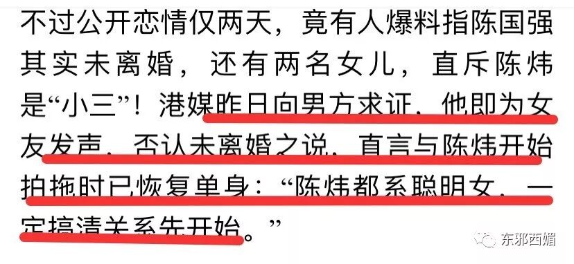 幸好新男友立刻挺身而出否认,表示跟前妻一年前就已离婚并办妥手续。他还表示:陈炜这么聪明的女子,当然是要他恢复单身搞清楚关系后,才会接受追求。