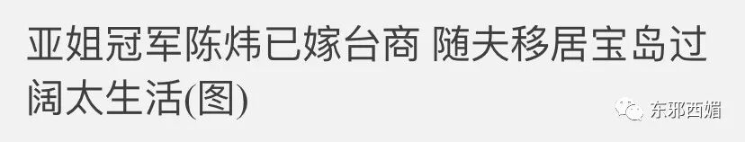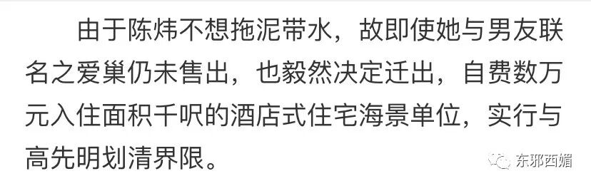 + n+ ^* N/ r0 |/ ]/ `) o* E想想陈炜因为坎坷情路损失了多少GDP,八八都觉得肉痛。她15年前临结婚发现男友劈腿,放弃了他和一起买的房子;11年前为了结婚跟随丈夫去台湾,又卖掉了后来在香港买的房子。* {) [- x0 e; M5 p) r, E4 ]' H! l