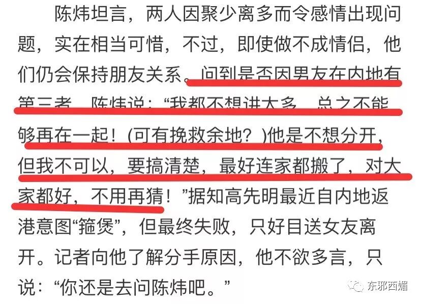 # a/ }3 C/ r, n& n' j) j! g面对港媒记者的轰炸追问,陈炜做到了分手不出恶言。但她这番话虽然说得含蓄,大家对发生了什么应该也很清楚了: